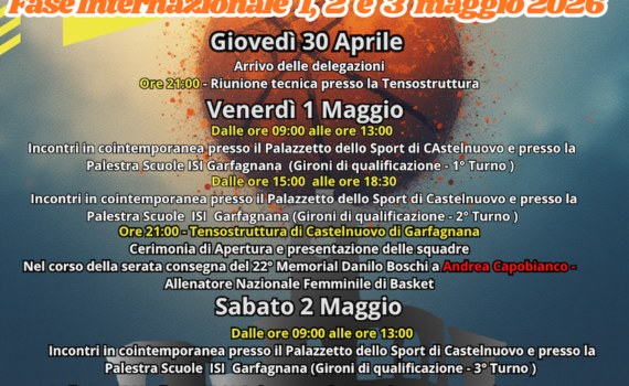 Si aprirà giovedì sera, con l’arrivo di alcune delle squadre partecipanti, la 33esima edizione del torneo di minibasket organizzato dal Cefa Basket Castelnuovo. Dodici le squadre in gara: tre estere, tre provenienti da Campania e […]